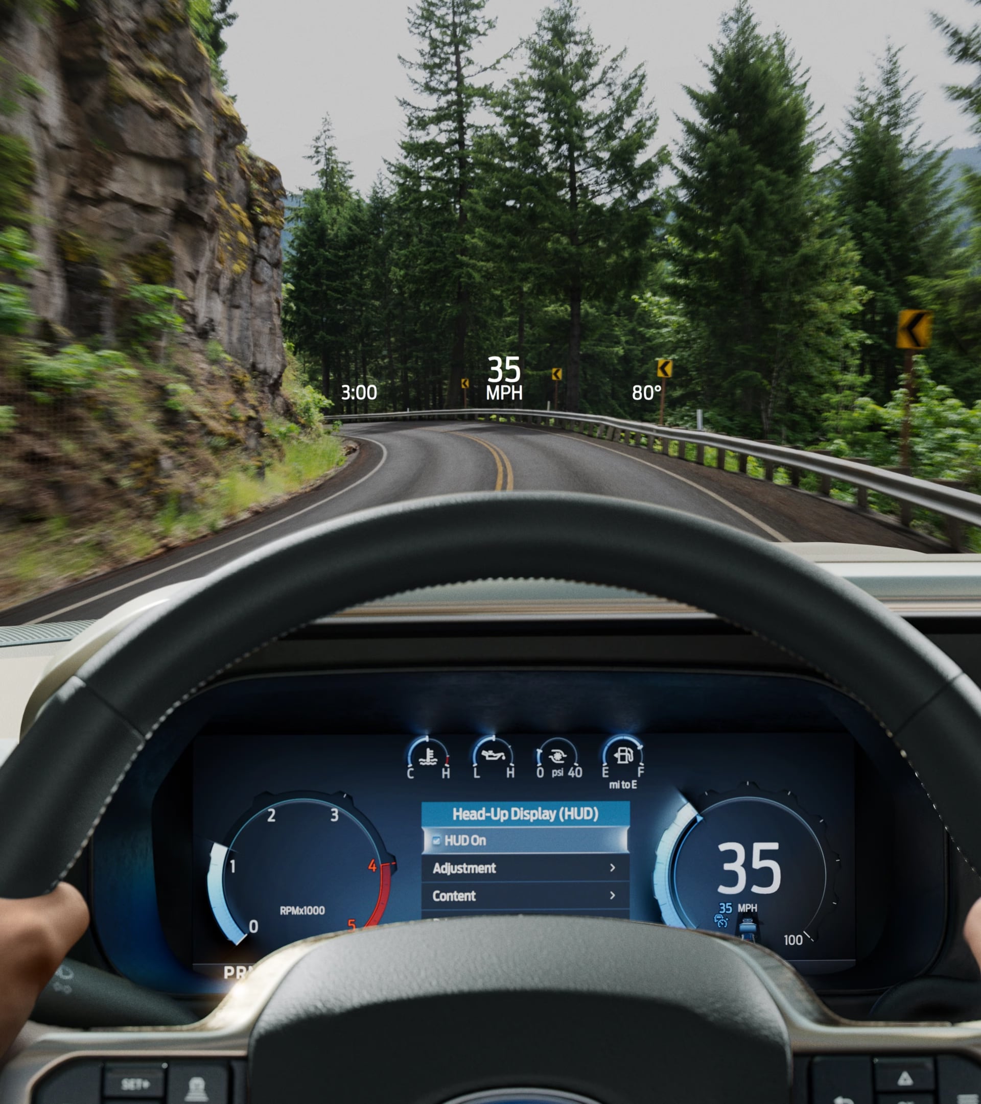 - 12" cluster display with head-up display